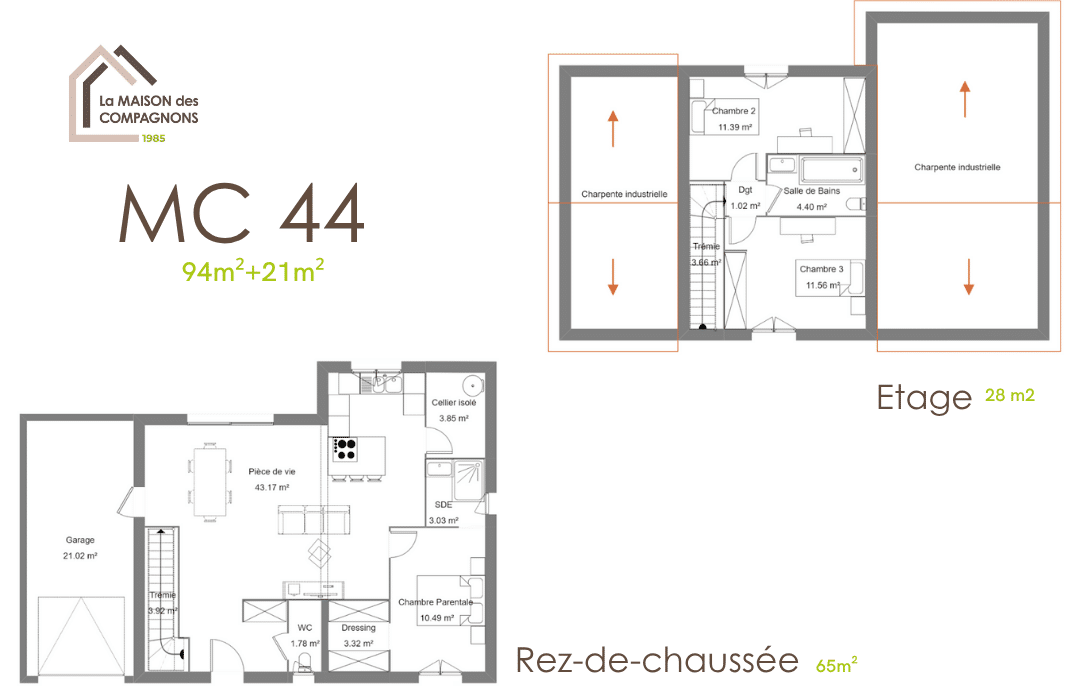 Ce modèle de maison avec chambre à l’étage vous séduira par son espace nuit isolé à l’étage permettant calme et intimité pour une suite parentale ou même pour recevoir ses proches. Une structure efficace qui permet à ce modèle de s’adapter à vos envies et vos besoins quotidiens pour le rendre idéal à vos yeux.
