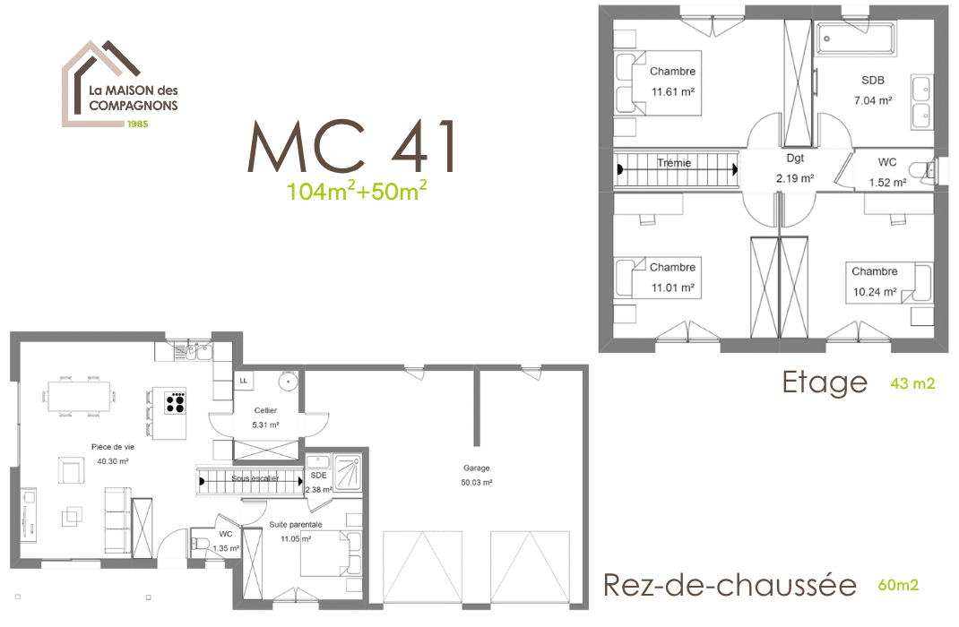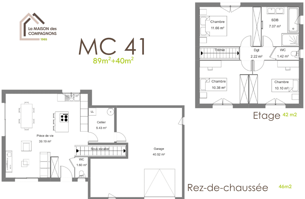 Ce modèle de maison à étage modulable vous séduira par son espace de vie au rez-de-jardin et l’espace de nuit à l’étage. Selon vos envies et besoins quotidiens, nous adaptons la structure pour qu’elle réponde à vos souhaits.